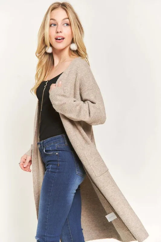 A 2-tone sweater open cardigan is a stylish and versatile layering piece featuring a two-tone color scheme and an open-front design. This cardigan typically has a cozy knit construction that provides warmth and comfort. The two-tone color combination adds visual interest and dimension to the garment, making it a chic and modern choice for layering over outfits. The open-front style allows for easy layering and adds a relaxed and effortless vibe to the cardigan. This type of sweater is perfect for transitioning between seasons and adding a stylish finishing touch to casual or dressier looks. Overall, a 2-tone sweater open cardigan is a fashionable and functional piece that can elevate your outfits with its trendy design.