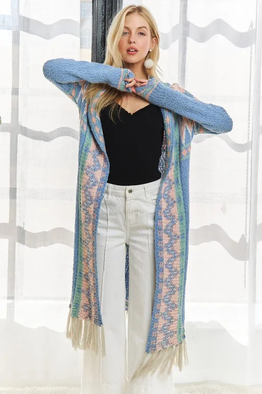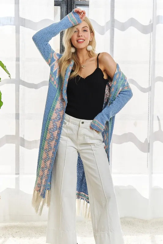 ADORA Fringe Hem Tribal Sweater Cardigan