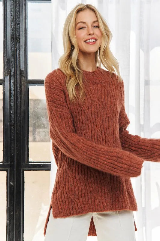 The hi-low hem comfy sweater is a stylish and comfortable wardrobe staple. With its longer hem in the back and shorter hem in the front, this sweater adds an interesting silhouette to your outfit. The cozy fabric makes it perfect for cooler weather, providing warmth and comfort. Pair it with jeans or leggings for a casual and on-trend look that is both versatile and easy to style for various occasions.