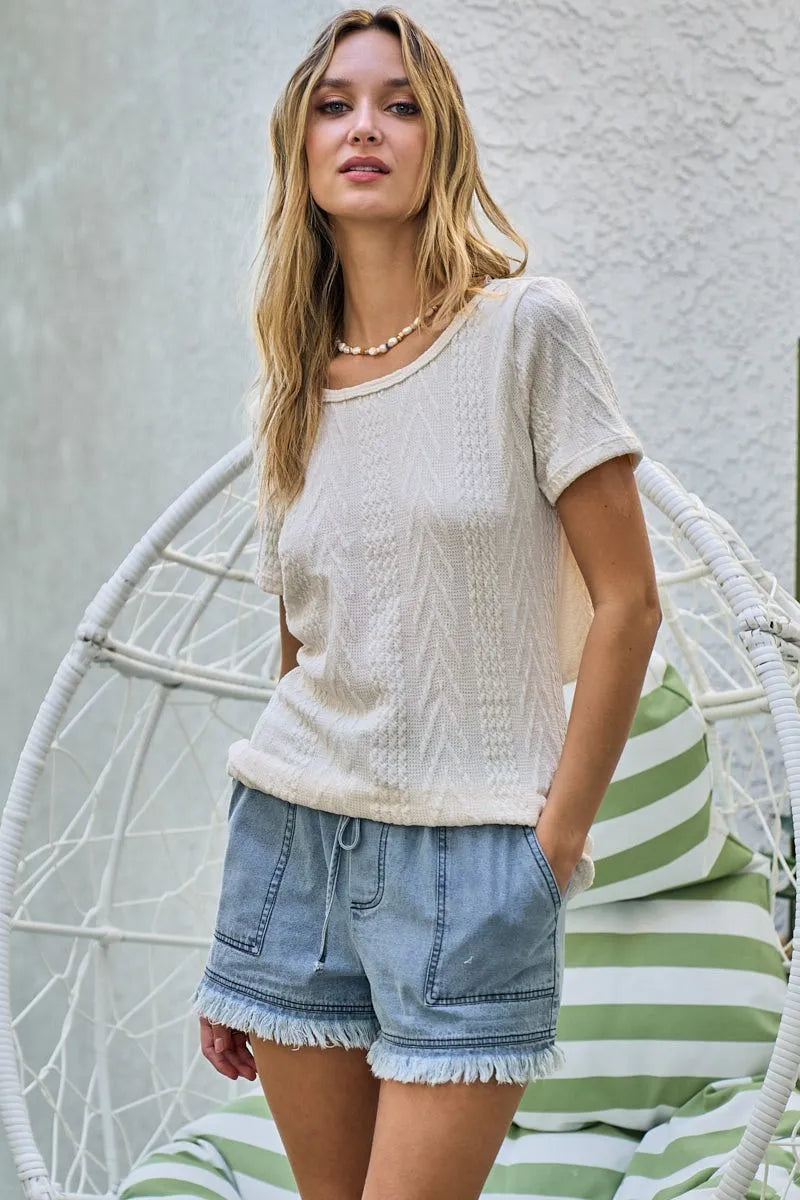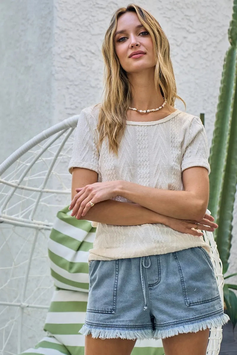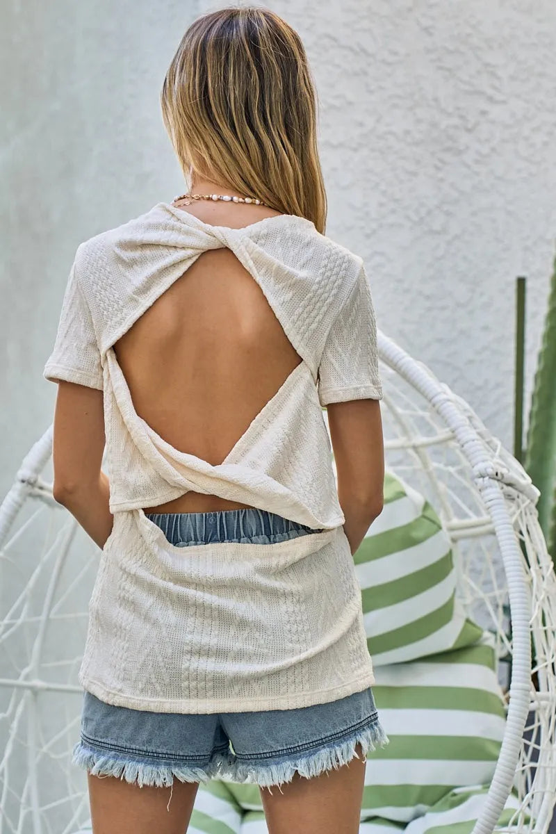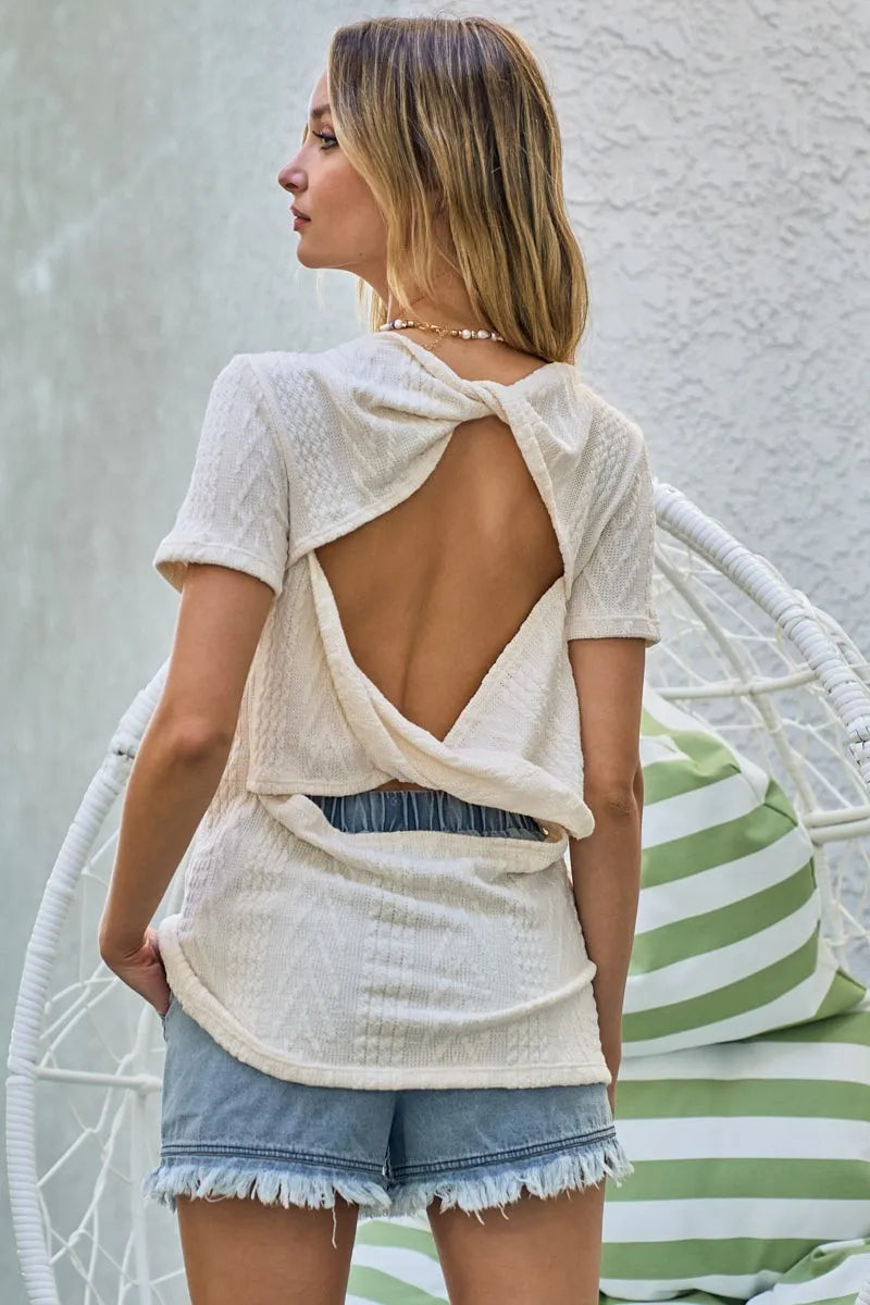 BiBi Cable Knit Top with Back Double Twist Detail