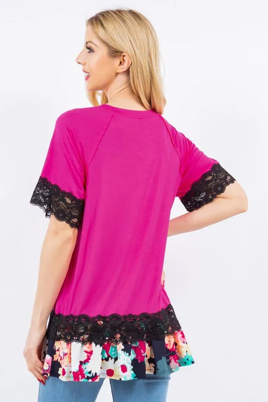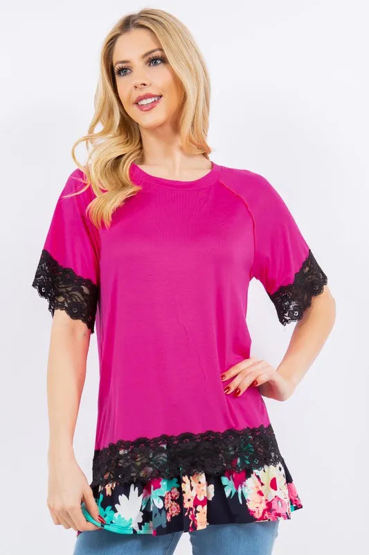 Celeste Full Size Lace Trim Short Sleeve Top Plus Size
