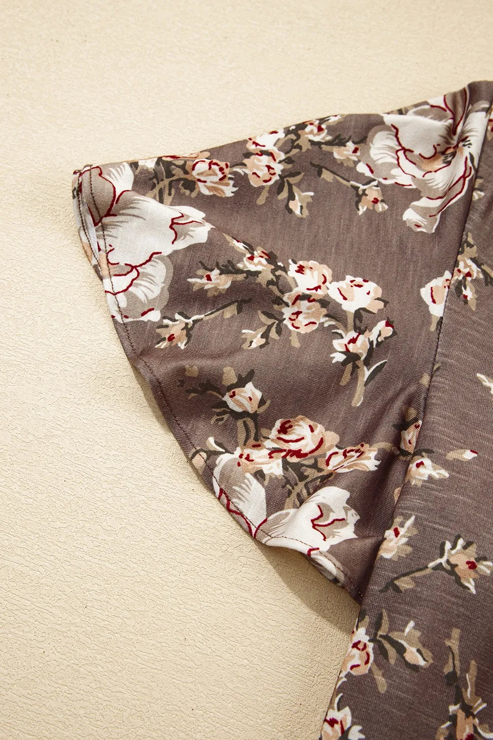 Floral Print Tassel Tie Split Neck Short Sleeve Blouse