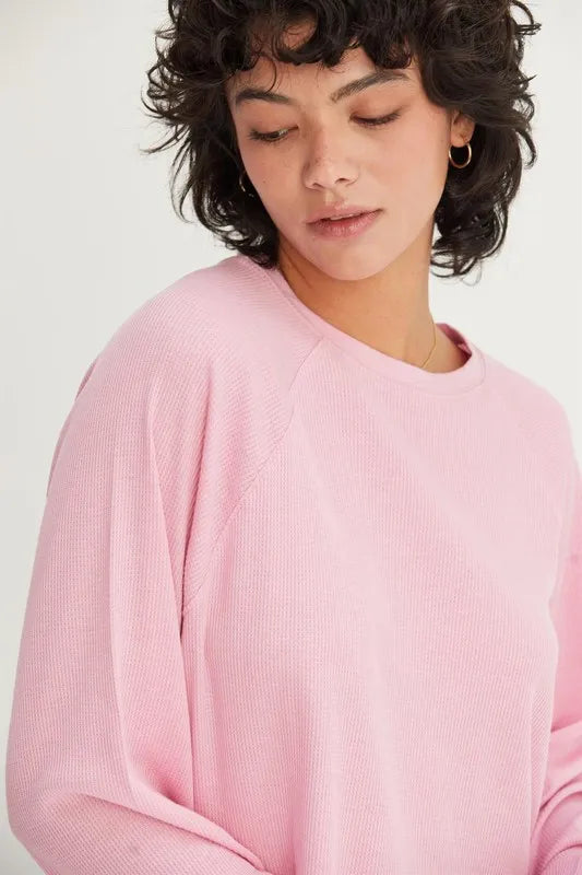 The Raglan Sleeve Crop Top is a trendy and stylish wardrobe essential. With raglan sleeves that provide a sporty and dynamic look, this top is both comfortable and fashionable. The cropped length adds a modern twist, making it perfect for pairing with high-waisted bottoms for a chic and on-trend outfit.