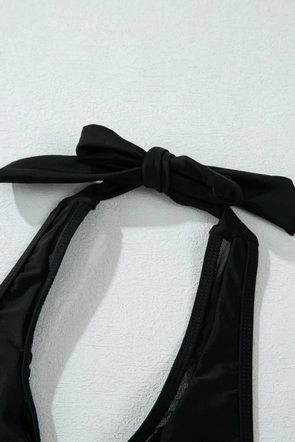 Sheer Mesh Edged Halter V Neck Push Up Bikini Set